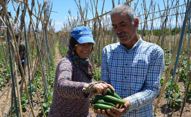 Üretici de memnunAdaören Mahallesi'nde eşiyle çiftçilik yapan Songül Yoldaş kiraladıkları arazide hibe desteğiyle salatalık ektiklerini söyledi.