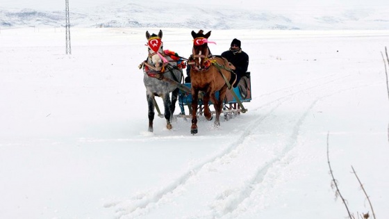 Bu günlerde hava sıcaklığının gece sıfırın altında 28 dereceye kadar düştüğü ilçede yer alan Çıldır Gölü tamamen donunca, atlı kızakçılar da turistler için düzenleyecekleri turların hazırlıklarını tamamladı.