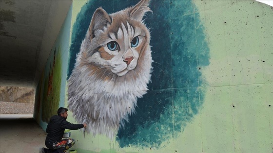 Bilecik'in Yenipazar ilçesinde çocukluğundan bu yana ilgi duyduğu sanatı sokak ressamlığıyla sürdüren 33 yaşındaki Tahir Karakaya, yapıları fırça darbeleriyle güzelleştiriyor.