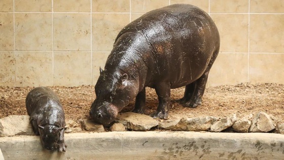 Nesli tükenme tehlikesi altında bulunan türlerden olan 7 yaşındaki cüce su aygırı Malya, 2 hafta önce başarılı bir doğum gerçekleştirerek ilk yavrusuna kavuştu.