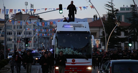 Yozgat'tan helikopterle Tokat'a gelen Cumhurbaşkanı Recep Tayyip Erdoğan, Hüseyin Akbaş Kapalı Spor Salonu önünde halka hitap etti. Mitingin ardından müzik öğretmeni Ozan Çekiç'in bestelediği ve yaklaşık 50 öğrenciden oluşan korunun seslendirdiği "Hedef 2023" marşını dinleyen Erdoğan, daha sonra miting otobüsü ile Tokat Valiliğine geçti. Cumhurbaşkanı Erdoğan'a yol boyunca vatandaşlar sevinç gösterilerinde bulundu. Valilik girişinde minik öğrenciler tarafından çiçeklerle karşılanan Cumhurbaşkanı Erdoğan, polis mangasını selamladı. Erdoğan, valiliğe girişinde vatandaşları da selamladı.