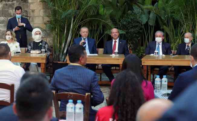 Cumhurbaşkanı Erdoğan, KKTC'ye yönelik resmi ziyareti kapsamında Lefkoşa'daki Büyük Han'da gençlerle bir araya geldi.