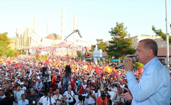 Cumhurbaşkanı Recep Tayyip Erdoğan, partisinin 15 Temmuz Demokrasi ve Şehitler Parkı'nda düzenlenen mitinginde, Mardinlilere hitap etti.