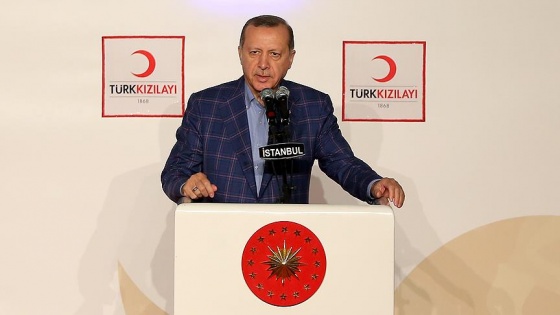 Türkiye'nin Suriyeli sığınmacılara yönelik yardımlarına değinen Erdoğan, "Türkiye, dünyanın en büyük mültecilere yardım operasyonunu yürütebiliyorsa bunda Kızılayın çok büyük rolü vardır." diye konuştu.