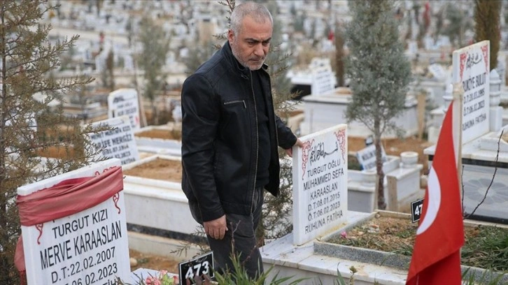 Eşi ve çocuklarının mezarının bakımını yapan Turgut Karaaslan, AA muhabirine, deprem günü Kırklareli'nde olduğunu, ailesinden haber alamaması üzerine hemen Malatya'ya gelmek üzere yola çıktığını söyledi.
