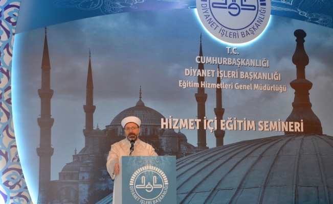 Din görevlilerine seslenen Diyanet İşleri Başkanı Prof. Dr. Ali Erbaş, “Mahallemizde Rabbini ve peygamberini tanımadığı için yolunu ve huzuru bulamayan tek kişi varsa kendimizi bundan sorumlu hissetmeliyiz” dedi.