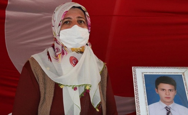 Ellerinde çocuklarının fotoğraflarıyla bekleyişlerini sürdüren annelerden Solmaz Övünç, HDP'nin oğlunu kandırarak terör örgütü PKK'ya verdiğini söyledi.