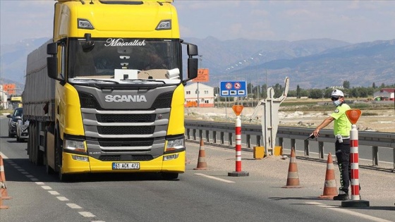 Erzurum-Erzincan kara yolundaki polis uygulama noktasında, canlı hayvan sevk kontrol noktası oluşturan İl Tarım Müdürlüğü ile polis ekipleri, canlı hayvan taşıyan tır ve kamyonları durdurup hayvanların pasaportlarını, sağlık raporlarını ve sevk bilgilerini inceliyor.