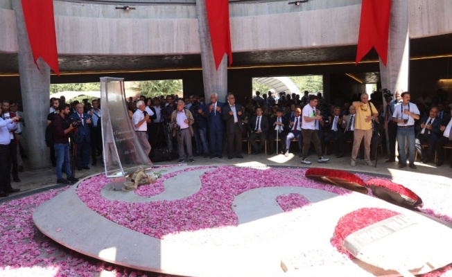Çalcatepe’de yapımı kısa süre önce tamamlanan anıt mezarda, merhum Demirel’in güllerle bezenmiş kabrine, tören esnasında ayrıca gül suyu sıkıldı. Törende Demirel’in özgeçmişinin okunmasının ardından Cumhurbaşkanlığı İdari İşler Başkanı Kıratlı, anıta Cumhurbaşkanlığı çelengini koydu. Saygı duruşunda bulunularak, İstiklal Marşı okunan törende ayrıca, Demirel için Kur’an-ı Kerim okunarak dualar edildi.