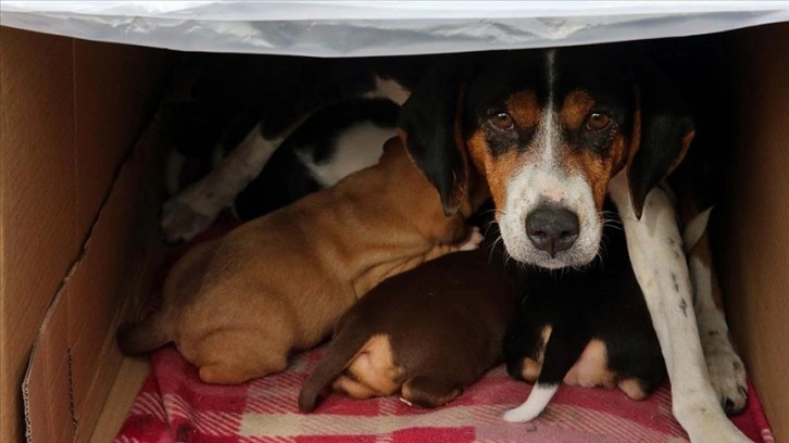 Köpeğin durak yakınlarında dolaştığını dile getiren Tekin, "Doğum yapacağını tahmin ettik, ilgi gösterdik. Yiyecek ve süt verdik. Bizim bu davranışımızdan cesaret alan hayvan, durağın içine girdi ve burada doğum yaptı." dedi.