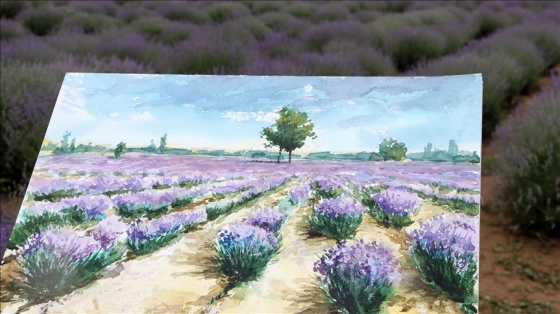 Lavantaların görselliği ve mis kokusuyla huzur verdiğini anlatan Demirkıran, "Lavantaları çizmek ve boyamak çok keyifli. Doğal bir stüdyo oldu bizim için. Çok güzel ve keyifli bir gün geçiriyoruz." dedi.