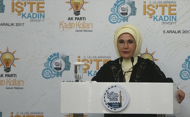 Emine Erdoğan, iş dünyasında ise 2005'te kadınların iş gücüne katılım oranı yüzde 23 iken 2017'de yüzde 34'e ulaştığını, 2023 hedeflerinin bu oranın yüzde 41'e yükseltilmesi olduğunu bildirdi.