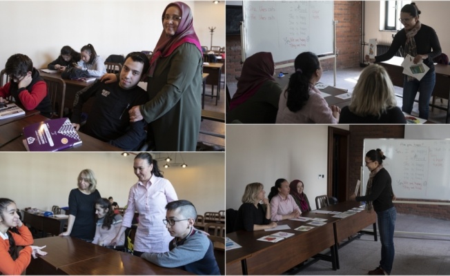 Çeşitli engel gruplarından çocuklarının hayattaki en büyük destekçileri olan anneler, evlatları cumartesi-pazar kurstayken başka bir sınıfta İngilizce öğrenmenin mutluluğunu yaşıyor.