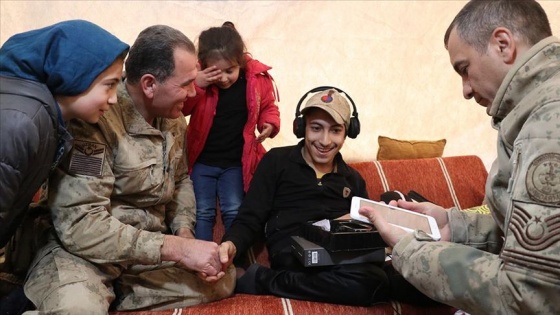 Elazığ'da yaşanan depremin ardından afetzedelerin yardımına koşan jandarma, engelli depremzede genç Samed Tekocak'ın tablet hayalini de gerçekleştirdi.
