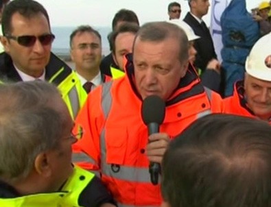 İstanbul Boğazı'nın iki yakasını 3. kez birleştiren Yavuz Sultan Selim Köprüsü’nün son tabliyesinin kaynak işlemini gerçekleştiren Cumhurbaşkanı Recep Tayyip Erdoğan, işçilere müjdeli bir haber verdi. Yüklenici firma IC Yatırım Holding Yönetim Kurulu Başkanı İbrahim Çeçen ile işçiler için ikramiye pazarlığı gerçekleştiren Cumhurbaşkanı Erdoğan, çalışanların desteğini aldı.