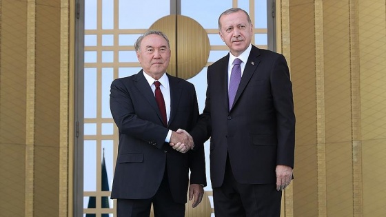 Türkiye Cumhurbaşkanı Recep Tayyip Erdoğan, Kazakistan Cumhurbaşkanı Nazarbayev'i, Cumhurbaşkanlığı Külliyesi'nin ana giriş kapısında karşıladı.