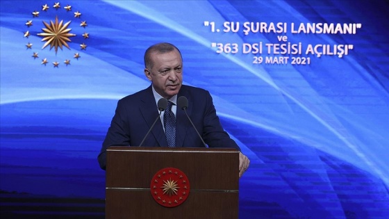 Erdoğan, Fırat Kalkanı ve Barış Pınarı Harekat Bölgelerinde açılan 141 su sondaj kuyusu ile yaklaşık 1 milyon 285 bin kişiye yetecek temiz içme ve kullanma suyu temin edildiğini kaydetti.