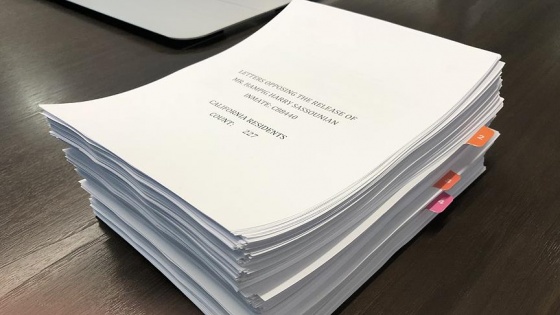 Kaliforniya eyaletindeki yeni uygulamaya göre belli koşullara uyan mahkumların her 18 ayda bir şartlı tahliye talebinde bulunabildiklerini kaydeden Evinch, Sasunyan'ın buna göre yeni bir tahliye duruşması talep ettiğini belirtti.