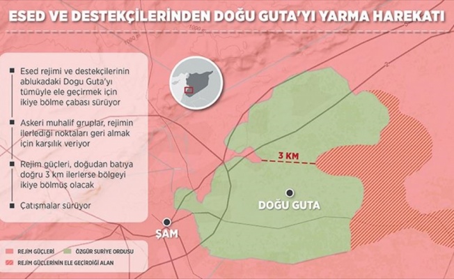 Esed rejimi ve destekçilerinin ablukadaki Dogu Guta'yı tümüyle ele geçirmek için ikiye bölme çabası sürüyor.