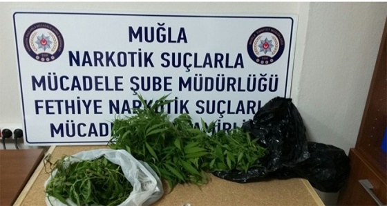 Fethiye ilçesi Patlangıç Mahallesi'nde 66 yaşındaki Halil O. isimli şahsın evinde uyuşturucu madde yetiştirdiği ihbarı alan Muğla Narkotik Suçlarla Mücadele Şube Müdürlüğü Muğla KOM Şube Müdürlüğü ve Fethiye Narkotik Suçlarla Mücadele Grup Amirliği ekipleri operasyon düzenledi. Halil O., isimli şahısın evinde yapılan aramada saksılara yetiştirilmiş Hint keneviri bitkisi ve 141 gram esrar maddesi ele geçirildi.