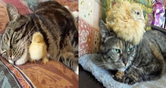 Sevimli civciv en küçük haliyle en yakın arkadaşı olan kedinin boynunun altında, yumuşacık tüyleri arasında dinleniyor. Kedinin de bu duruma sesinin çıkarmadan uyuması ise izleyenleri hayrete düşürüyor. İleryen zamanlarda ise biraz büyüyen civciv, kedinin kafasında keyfine düşkün oturyor. Bu sefer kedi kafasındaki iri civciv nedeniye uyuyamıyor ve masumca etrafına bakıyor.