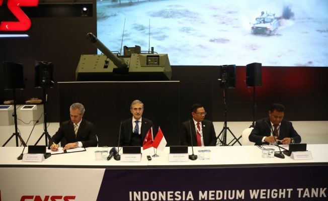 Endonezya Kara Kuvvetleri için Orta Ağırlık Sınıfı Tank Seri Üretim ve İş Birliği Sözleşmesi imza töreni, 14. Uluslararası Savunma Sanayii Fuarı'nda (IDEF 2019) bulunan FNSS standında gerçekleşti.