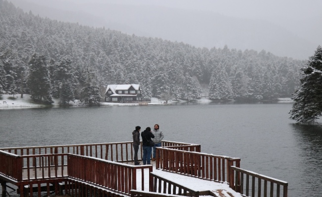 Bolu’da sabah saatlerinde başlayan kar yağışıyla birlikte ünlü turizm merkezlerinden Gölcük Tabiat Parkı beyaz örtüyle kaplandı.