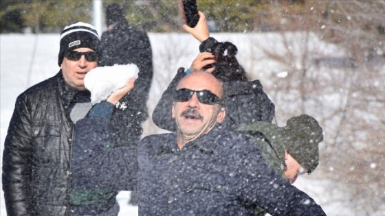 Yemleme çalışmasının ardından görme engelliler kar topu savaşı yaptı. Sesin geldiği noktaya odaklanan görme engelliler, hedeflerini vurmaya çalıştı.