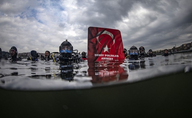 Görme, işitme, süreğen, fiziksel ve zihinsel engelliler, "vatan dalışı" adı verilen etkinlikte, kurbağa adamlar eşliğinde 5 metre derinliğe inerek ay-yıldızlı şehitler anıtını zemine yerleştirdi.