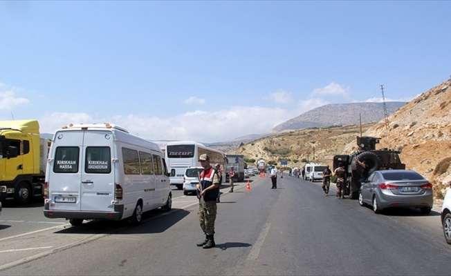 Operasyon nedeniyle karayolu çift taraflı trafiğe kapatıldı. Ulaşıma kapatılan yolda uzun araç kuyrukları oluştu.