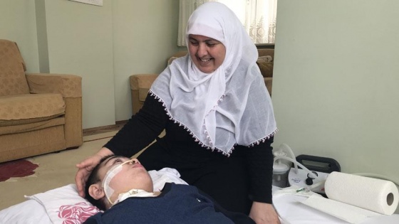 "Fatih 19 yaşında ve 5 yıldır yatıyor. Fatih'in bakımı konusunda her şeyi kendim yapıyorum. Altını bezliyorum, banyosunu yaptırıyorum, mama veriyorum, aspire ediyorum, beslenme tüpünü kendim takıyorum, boğazındaki aparatı kendim değiştiriyorum. Sadece boğazındaki aparat değiştirildiği sırada nefesi kesildiği için yanımda birinin olmasını istiyorum. Onun dışındaki işlemleri yapabiliyorum. Önceden elektrik kesildiğinde sıkıntı oluyordu, şarjlı makine aldık. Oksijen kullanmamız da gerekiyor. 2 aydır nöbet geçirmemesi için ilaç kullanıyoruz. Bu nedenle daha rahatız. Ancak önceden geceleri sıkıntılı dönemler geçirdi. Çok sık nöbet geçiriyordu. Biz de nöbet geçirmesinden korkuyorduk ve ona müdahale edebilmek için gece gündüz sürekli başında bekliyorduk."