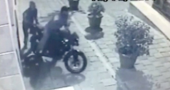 Motosiklet hırsızlığı kameradaGüvenlik kameralarına yansıyan görüntülerde, hırsızlar motosikleti kurcalamaya başlıyor. Zincirle bağlı olduğunu fark eden hırsızlar ardından yanlarında getirdiği demir kesme aletini çıkartıyor. Hırsızlardan biri zinciri kesmeye çalışırken diğeri de etrafı gözetliyor. Dakikalarca uğraşan hırsız bir süre sonra zinciri kesiyor. Direksiyon kilidini kıran hırsızlar düz kontak yaptıktan sonra motosikleti çalıyor. Hırsızların rahat tavırları ise gözden kaçmıyor. Daha sonra hırsızlar, motosiklete binerek hızla kayıplar karışıyor.