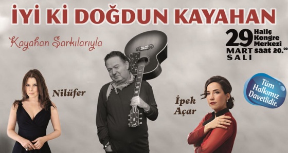 Haliç Kongre Merkezi’nde 29 Mart Salı günü gerçekleşecek olan “İyi ki Doğdun Kayahan” adlı anma etkinliğinde, Nilüfer ve İpek Açar’ın yanı sıra sürpriz sanatçılar Kayahan şarkılarını seslendirecek. Müjde Uzman’ın sunuculuğunu üstlendiği gecede sanatçılar; “Esmer Günler”, “Bir Aşk Hikayesi”, “Emrin Olur”, “ Mor Menekşe”, “Gönül Sayfam”, “Odalarda Işıksızım” ve “Yemin Ettim” gibi Türk pop müziğine damgasını vuran birçok eserin yer aldığı özel bir repertuvarla Kayahan hayranlarına duygulu anlar yaşatacak. Kayahan sevenlerini bir araya getirecek olan bu anma konseri, halka açık ve ücretsiz olarak 20.00’de gerçekleştirilecek.