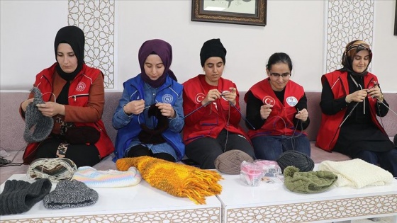 Erzincan'da, Gençlik Hizmetleri ve Spor İl Müdürlüğüne bağlı Gençlik Merkezi bünyesinde çalışan gönüllü genç kadınlar, harçlıklarıyla aldıkları örgü malzemeleri ile hazırladıkları el emeği göz nuru ürünleri, İdlib'de yaşayan çocuklara gönderecek.