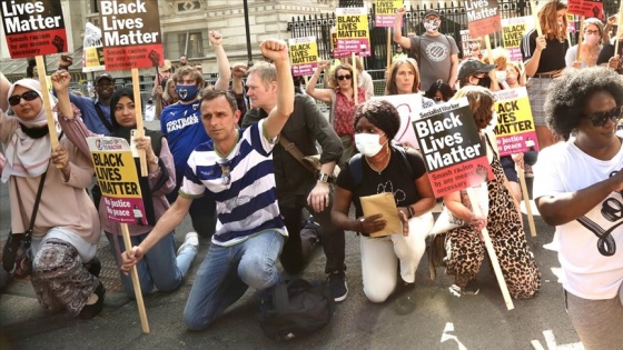 Başbakanlık Ofisi 10 Numara önünde bir araya gelen "Irkçılığa karşı dur" adlı grubun üyeleri burada "diz çökme" eylemi yaptı.