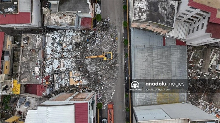 Pazarcık ve Elibistan merkezli 6 Şubat'taki depremlerin ardından ilçedeki enkazlarda ve binalarda başlatılan çalışmalar sürüyor.