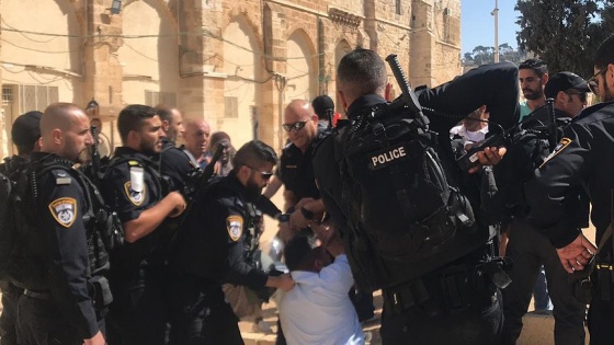 İsrail polisi, işgal altındaki Doğu Kudüs'ün Eski Şehir bölgesinde yer alan Mescid-i Aksa'nın içerisinde bulunan kutsal mekanın korumalarına ve cemaate saldırdığı bildirildi.