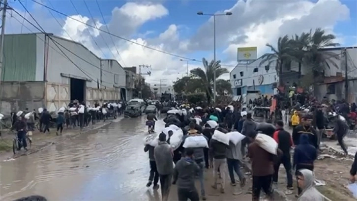 Sosyal medyada yer alan görüntüye göre Birleşmiş Milletler (BM) Yakın Doğu'daki Filistinli Mültecilere Yardım ve Bayındırlık Ajansı (UNRWA), Gazze’nin kuzeyinde un dağıttı.