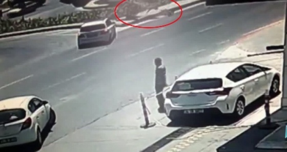 Havada defalarca takla atıp, yere savruldular Güvenlik kameralarına yansıyan görüntülerde, otomobil akaryakıt istasyonundan çıkarak yolun karşısına geçiyor. O esnada seyir halinde olan motosikletli otomobili görerek frene basıyor. Ancak otomobil sürücüsü motosikletliye çarpıyor. Çarpmanın etkisiyle motosikletin üzerindekiler havalanarak takla atıyor. Birkaç metre ileriye savrulan sürücü ve arkadaşı yaralanıyor. Kazayı görenler ise başlarına koşuyor.