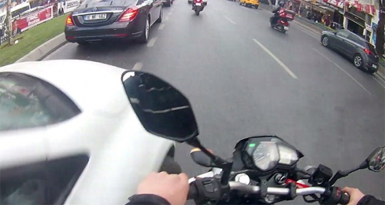 Beşiktaş Yıldız Barbaros Bulvarı üzerinde geçtiğimiz günlerde meydana gelen olayda, Enis K. motosikletliyle Dolmabahçe istikametine doğru seyretmeye başladı. Başka bir motosikletli arkadaşıyla da hem seyreden hem de şakalaşan genç bir süre sonra yol ayrımını geldi. Ayrımda dönmeyi bekleyen bir otomobil aniden şerit değiştirerek motosikletin önüne kırdı. Mesafenin çok kısa olması nedeniyle kurtaramayan sürücü Enis K., otomobile çarparak takla attı. Yere düşmesinin ardından metrelerce sürüklenen genç sürücünün yardımın arkadaşı ve çevredeki sürücüler koştu. Ölümden dönen ancak hafif bir şekilde yaralanan genç ve motosikleti dakikalar sonra yeden kaldırıldı. Tüm bu yaşananlar ise kask kamerasına saniye saniye yansıdı.