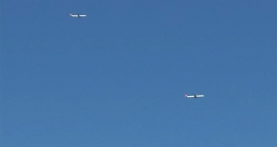 Yolcu uçakları gösteri uçağı gibi bir birine yakın uçması görenleri şaşırttı. Uçakların uzun süre aynı şekilde uçması vatandaşları heyecanlandırırken birçok vatandaş o anları cep telefonlarıyla ölümsüzleştirdi.