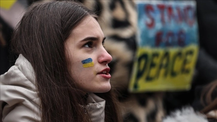 Ukrayna bayrağı ile "savaşa hayır" ve "özgür Ukrayna" pankartları taşıyan grup, savaşın bir an önce durdurulmasını istedi.