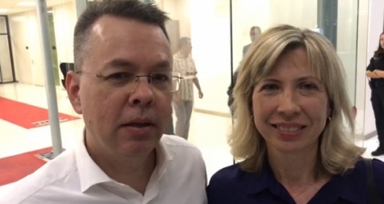 İHA muhabiri Mihrap Düzöz'ün görüntülediği Papaz Brunson, Türkiye'den ayrılırken uçağına binmeden önce “Ben Türkiye'yi seviyorum, hep sevdim hep seveceğim” dedi.