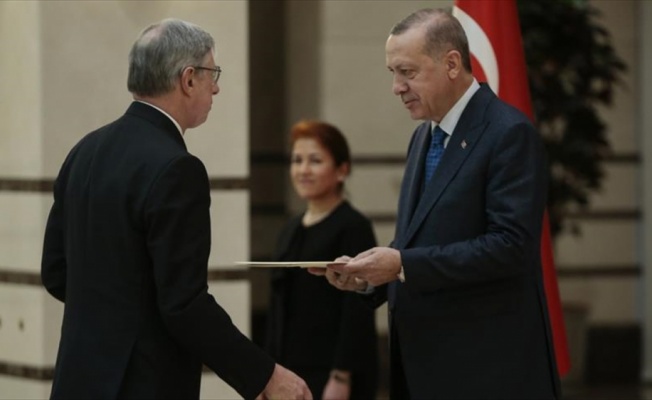 ANKARA (AA) - Cumhurbaşkanlığı Külliyesi'ndeki kabulde Büyükelçi Gaiani, Cumhurbaşkanı Erdoğan'a güven mektubu sundu.