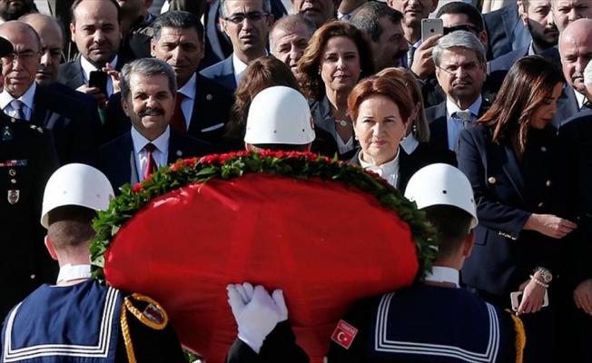 İlk olarak Anıtkabir'e gelen Akşener, Aslanlı Yol'dan yürüyerek, Atatürk'ün mozolesine çelenk bıraktı.
