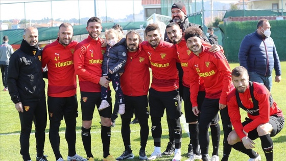 İzmir'de 30 Ekim 2020'de meydana gelen depremde yıkılan Rıza Bey Apartmanı'nın enkazından 91 saat sonra kurtarılan 3 yaşındaki Ayda Gezgin, ağabeyi Atakan ve babası Uğur Gezgin'le Adnan Süvari Tesisleri'ne gelip, idman öncesi teknik heyet ve futbolcularla buluştu.