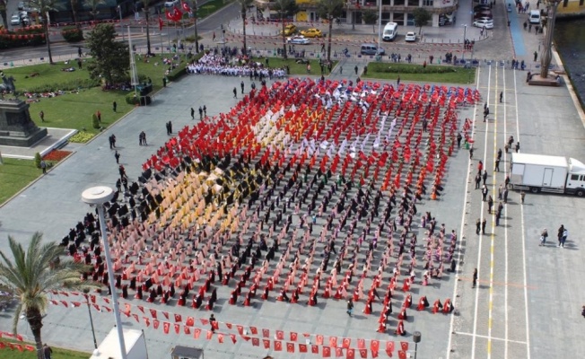 23 Nisan Ulusal Egemenlik ve Çocuk Bayramı’nda İzmir’deki kutlamaların adresi Cumhuriyet Meydanı oldu. Törende ilk olarak İzmir İl Milli Eğitim Müdürlüğü çelengi Atatürk Anıtı’na sunuldu, ardından saygı duruşunda bulunularak İstiklal Marşı okundu. Daha sonra bayraklar öğrenciler tarafından göndere çekildi. Çelenk sunma töreninin ardından kutlama programına geçildi. İzmir Büyükşehir Belediye Başkanı Tunç Soyer ise tören alanına bisikletiyle geldi. İzmir Valisi Erol Ayyıldız, Ege Ordusu Garnizon Komutanı Orgeneral Abdullah Recep ve İzmir Büyükşehir Belediye Başkanı Tunç Soyer’e öğrenciler tarafından çiçek takdim edildi. Öğrencilerin birbirinden renkli gösteri ile görsel bir şölen sundu.