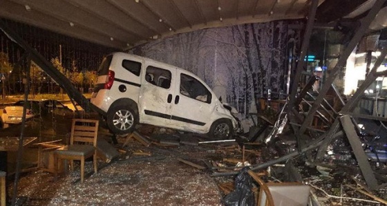 Çarpmanın etkisiyle havalanan araç bulvar üzerindeki kafeye girdi.