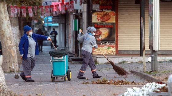 Kadınlar, Kovid-19 salgınına rağmen görevlerini bir an olsun aksatmadan sürdürüyor. Sabah caddelerde hareketlilik yaşanmadan vatandaşa "Temiz bir ilçe" sunulması amacıyla mesaiye erken başlatılan işçiler, saat 16.00'da çalışmalarını tamamlıyor.
