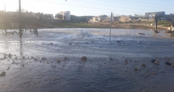 Midyat-Nusaybin arası Çatalözü Mahallesi mevkiinde kanalizasyon alt yapı çalışmaları yapılırken Beyazsu hattında patlama yaşandı.